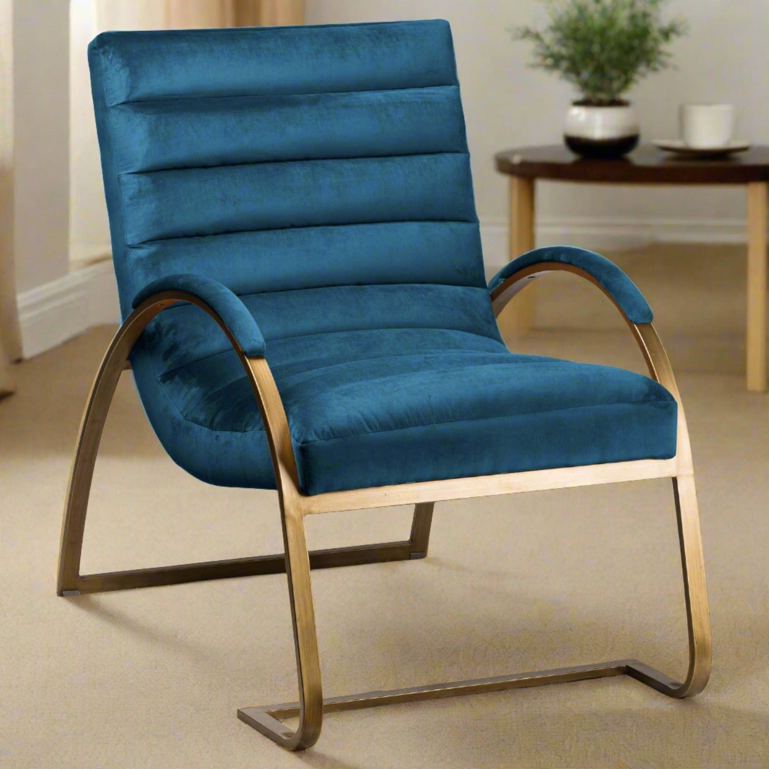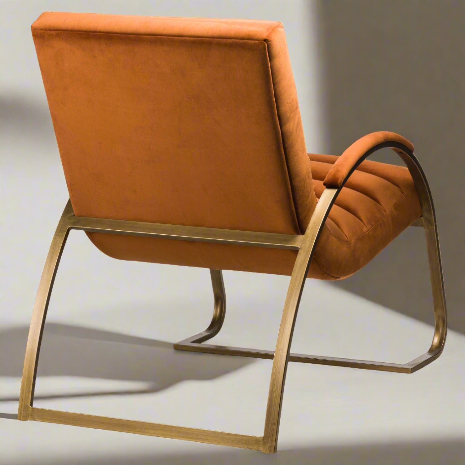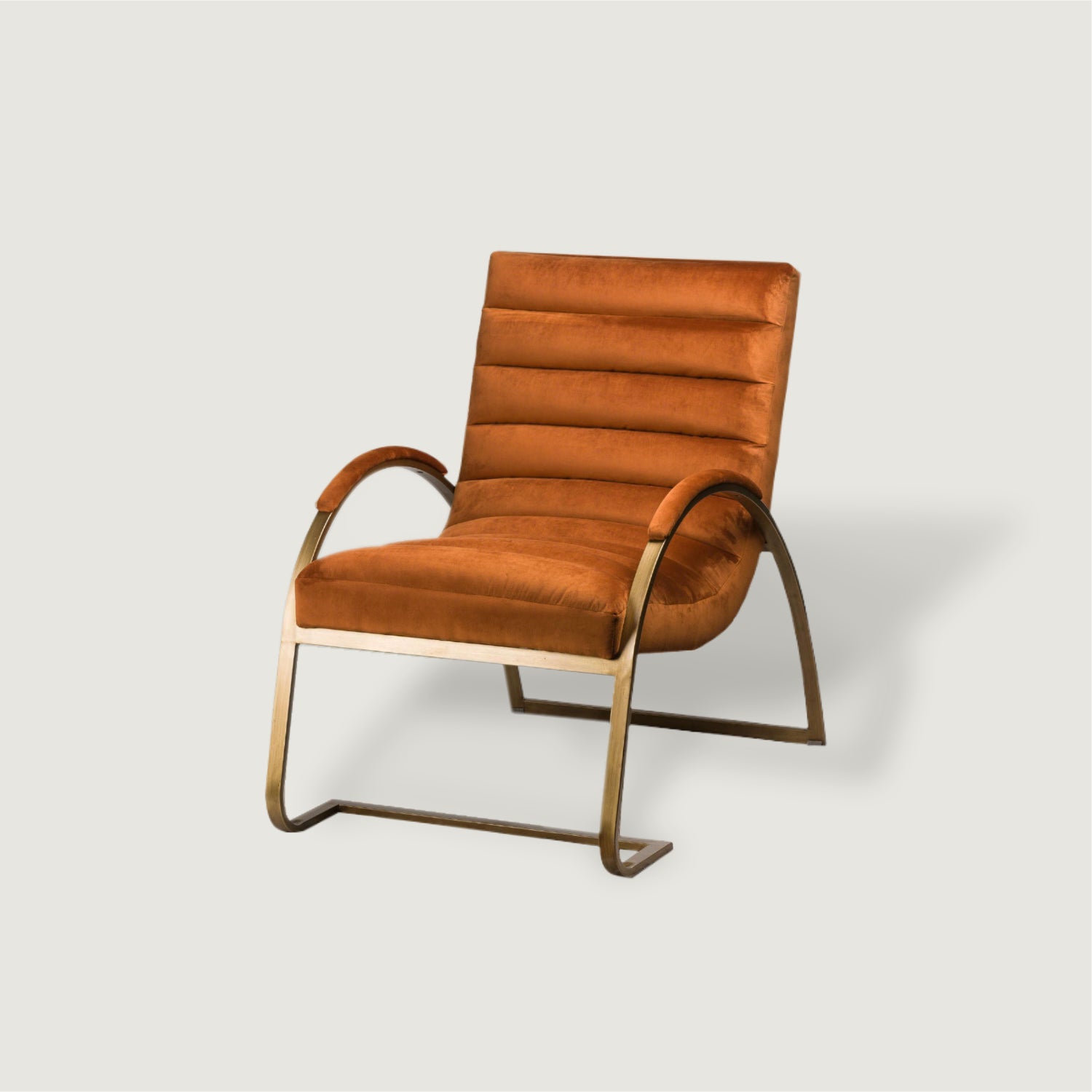 Combining sumptuous velvety comfort with serious style. This chair's elegantly arked brass frame gives it a contemporary vibe that is underlined by its on-trend burnt orange velvet cushioning. A perfect meeting of form and function, The Burnt Orange and Brass Ribbed Ark Chair is sure to appeal to those looking to curate a stylish yet comfortable interior space.