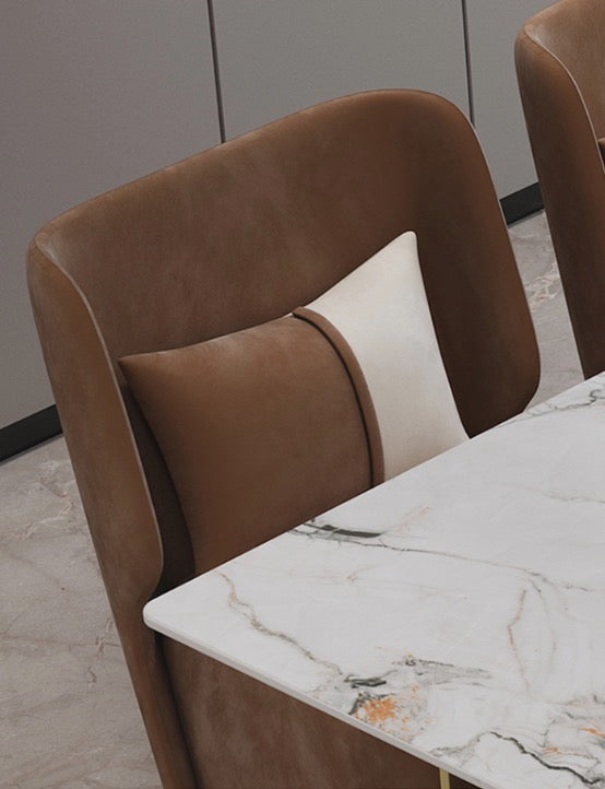 Revel in a distinctively exquisite seating experience with the Aegina Dining Chair, boasting deluxe velvet upholstery and modern angles for a sleek and inviting aesthetic. Designed for connoisseurs, this bespoke chair will be the centre of attention in your dining area.