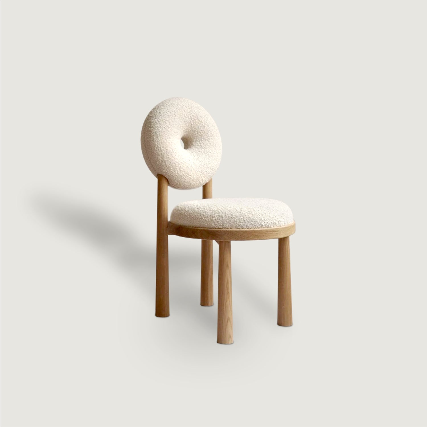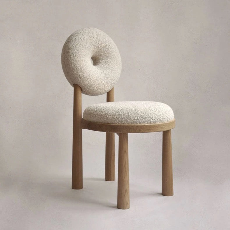 The Santi Dining Chair brings a lavish touch of luxury to any dining space. Featuring a bouclé design and a halo backrest, this chair offers maximum comfort and unparalleled elegance. Enjoy the added fluff of the finely crafted fabric and bask in the sheer opulence of this exquisite piece.
