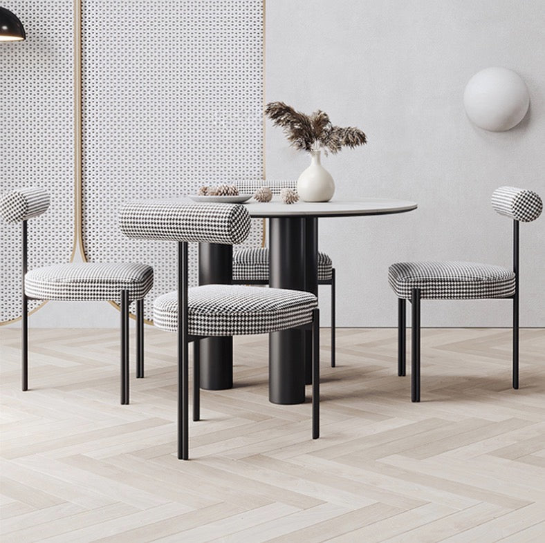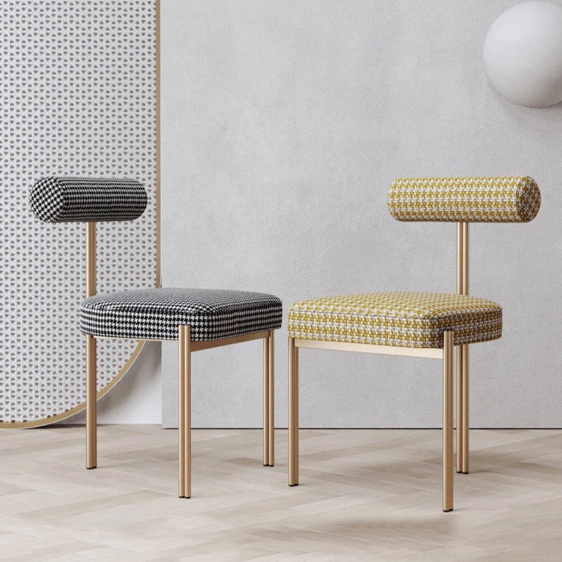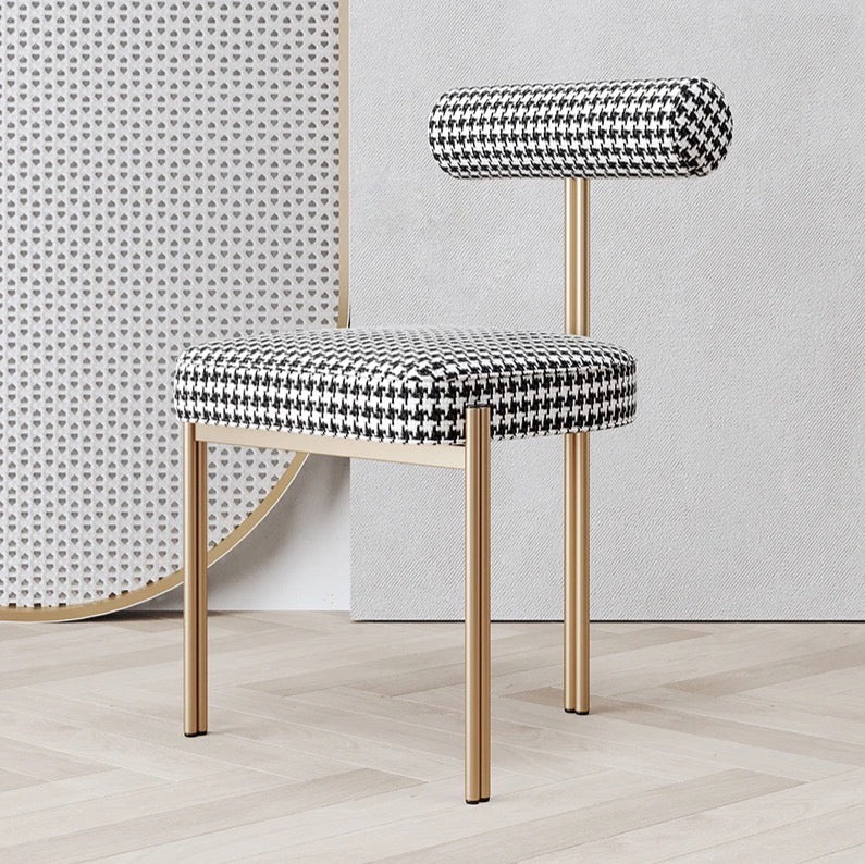 Bring elegance to your dining room with the Zaya Dining Chair. Wrapped in houndstooth patterned upholstery, this fashion-forward dining chair is perfect for creating a sophisticated and glamorous ambience.