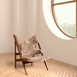 The Croft Chair, inspired by the serene beauty of British farmsteads, features responsibly sourced sheepskin for a soft, natural embrace. Its timeless design transforms any space into a haven of comfort and quiet elegance.