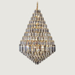 The Cascade Chandelier is a magnificent piece that exudes luxury and grandeur. Its tiered, teardrop-shaped fixture comprises of multiple layers of clear, elongated crystal prisms, arranged to create a tapering silhouette.