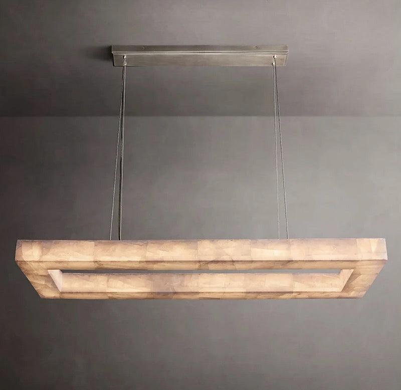 The Tablo Marble Chandelier unites minimalist design with a hint of refined luxury. Crafted from natural marble, this bespoke piece brings sophistication to any setting. Its elegant form and gentle illumination create a calming ambience, complementing a variety of interior styles, from modern to classic.