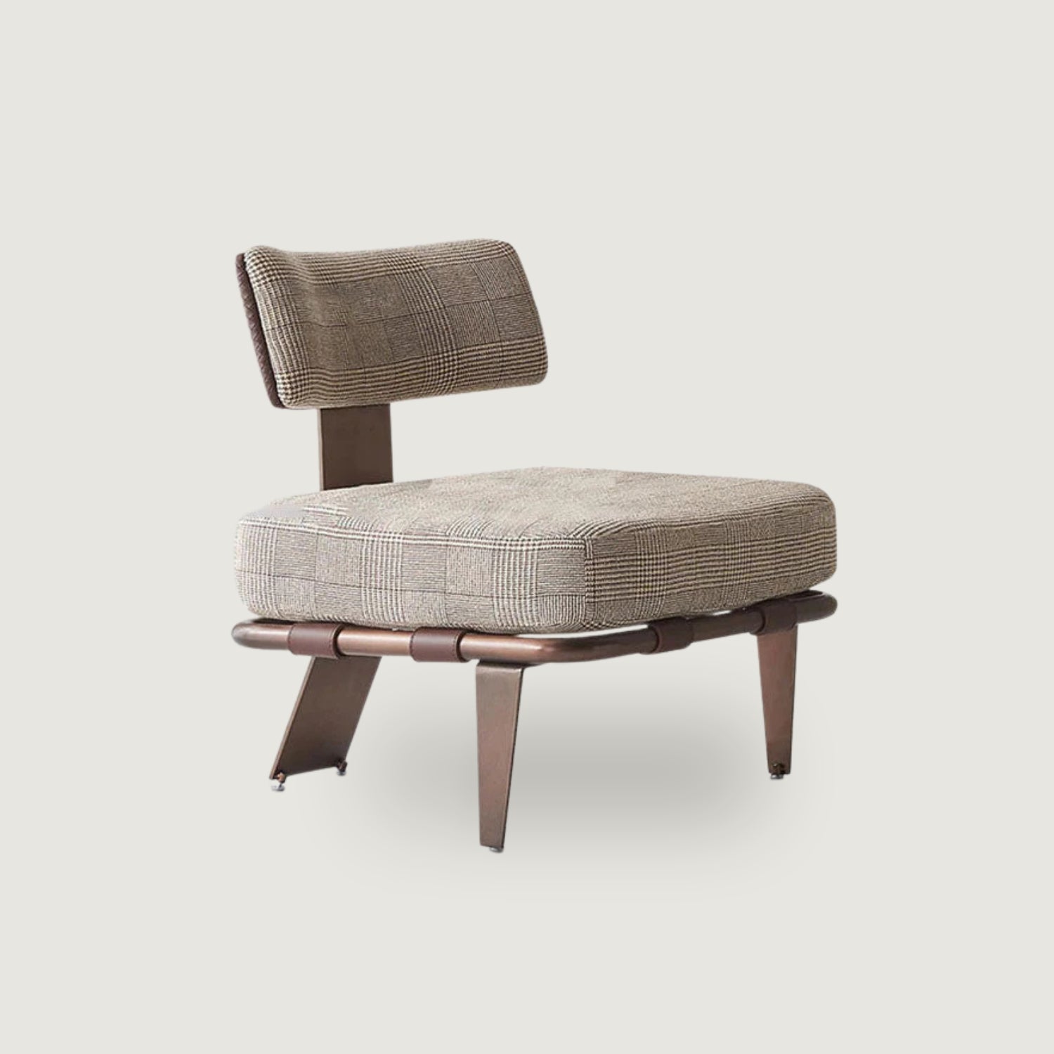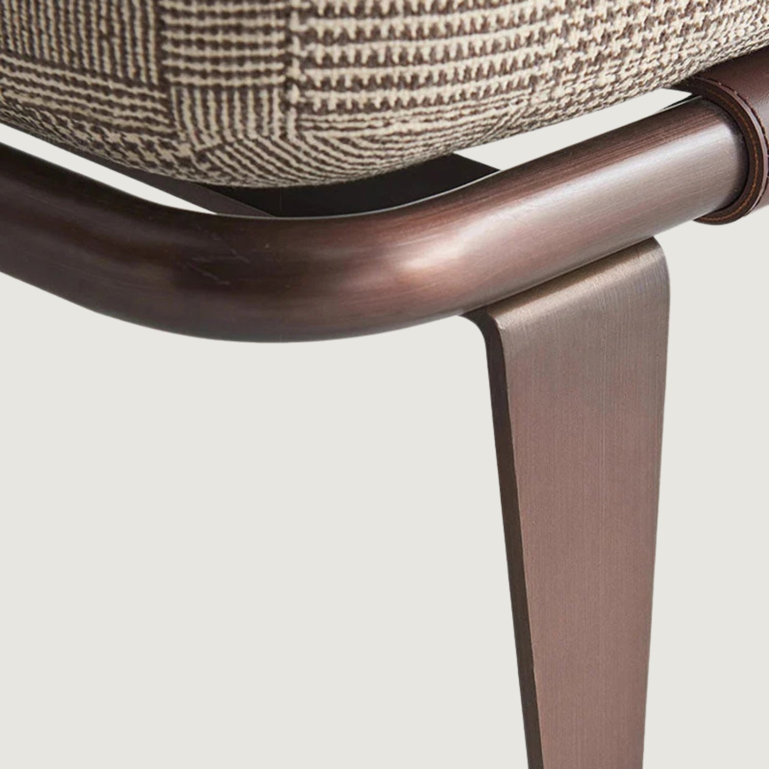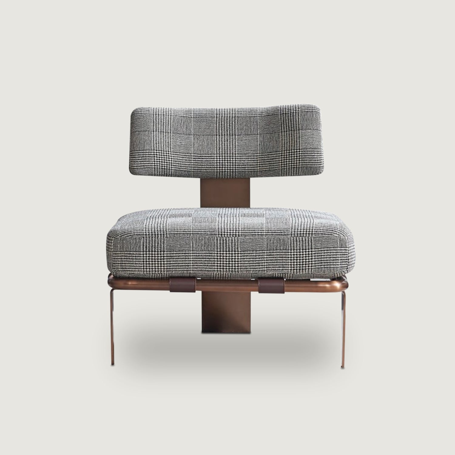 Materials: Chromed bronze stainless steel, Leather, Elbrus Linen/Salerno Velvet/Black & White Houndstooth Wool.
