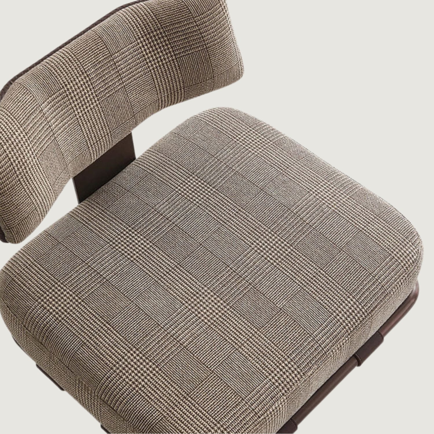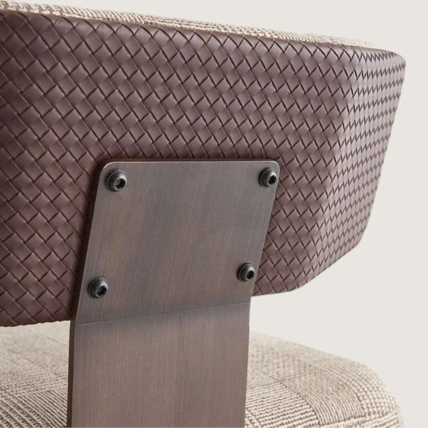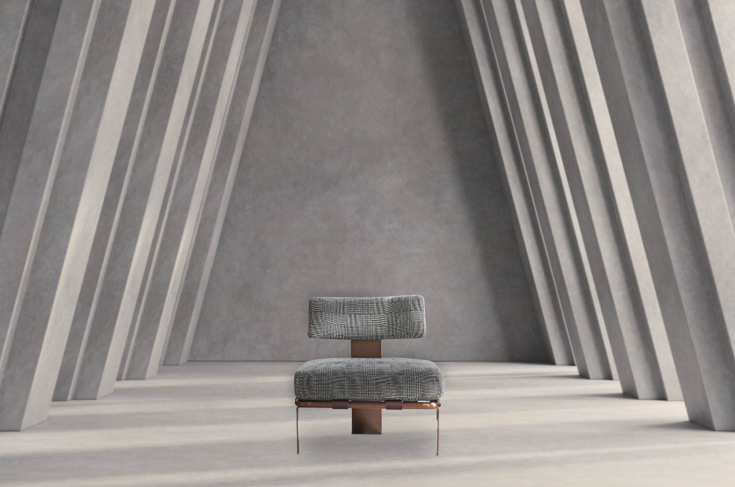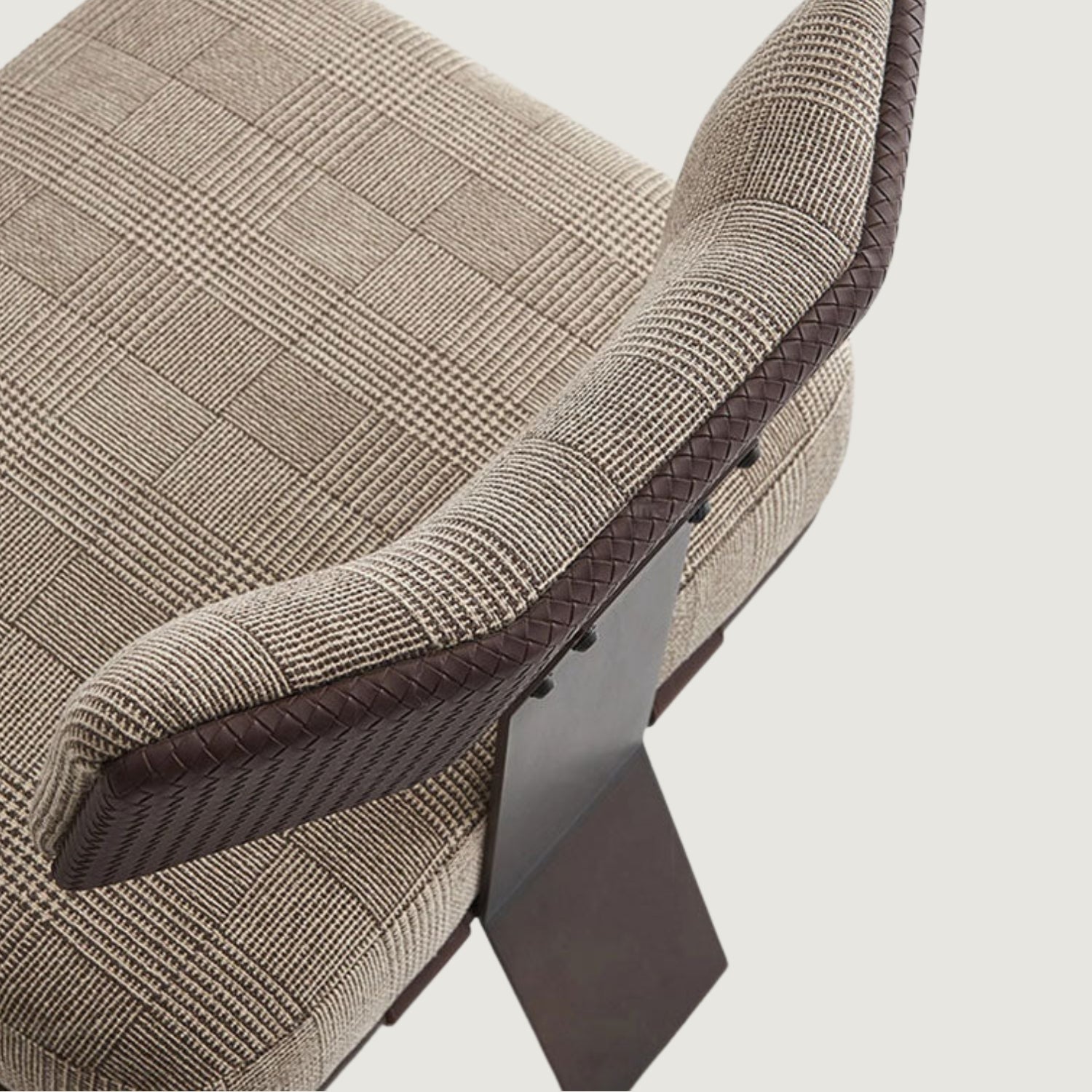 Materials: Chromed bronze stainless steel, Leather, Elbrus Linen/Salerno Velvet/Black & White Houndstooth Wool.