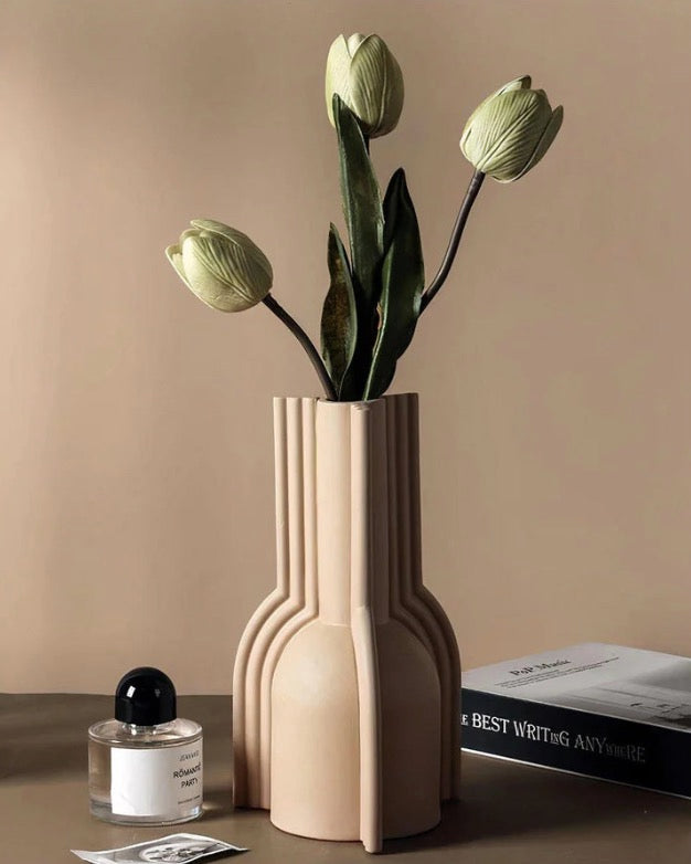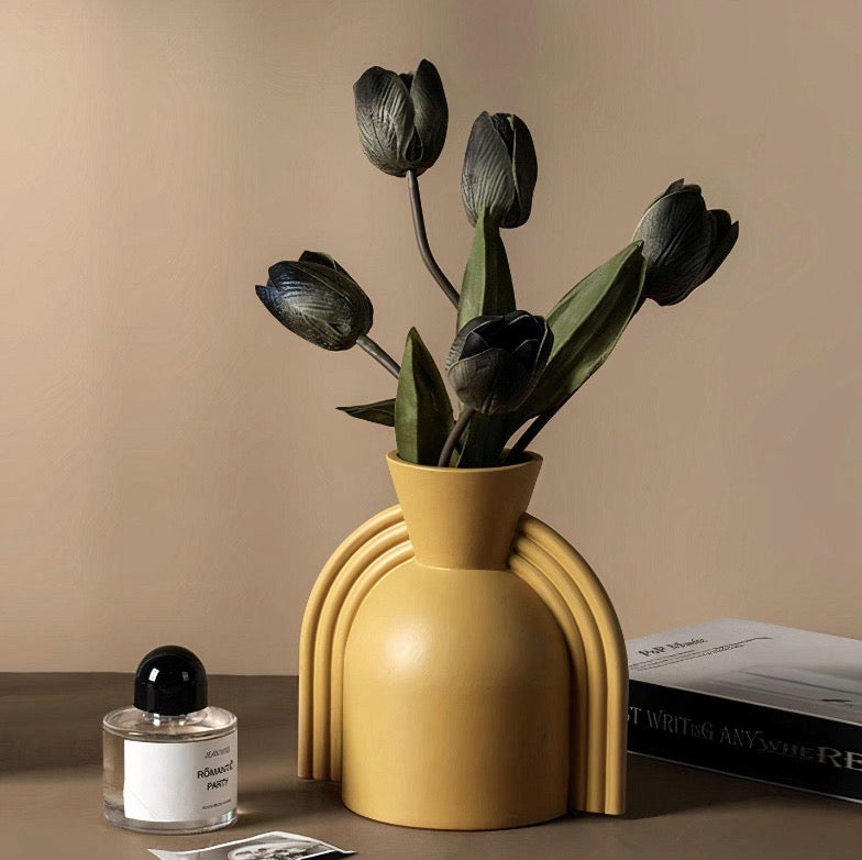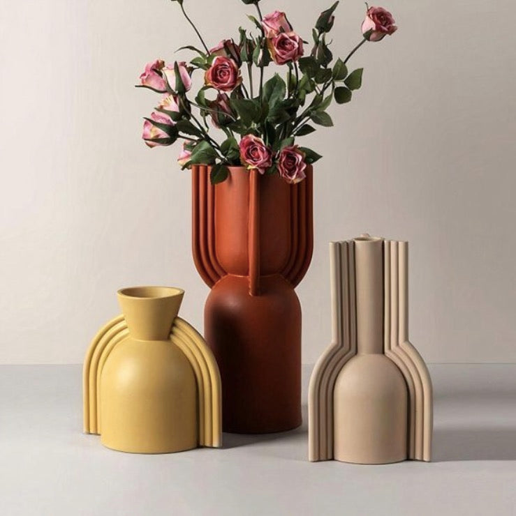 The Kali Vase radiates modern sophistication with its contemporary design and tube handles. Its sleek ceramic silhouette available in three beautiful shades, beige, yellow, and rouge, ensures that this luxurious piece will elegantly compliment any home. Make a statement with this exquisite vase.