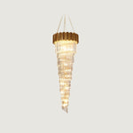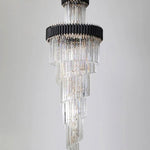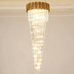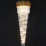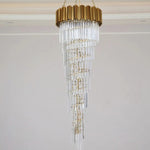 A sight of grandeur awaits with the Celeste Chandelier. Its modern rectangular design creates a vertical presence, supported by a series of elegant chains. The cylindrical glass elements arranged in multiple rows cascade like a waterfall of luxurious light, illuminating any space with a brilliance only found in the most exquisite of interiors. An opulent choice for a high-ceilinged room or foyer, this chandelier will add glamour and sophistication to your home.