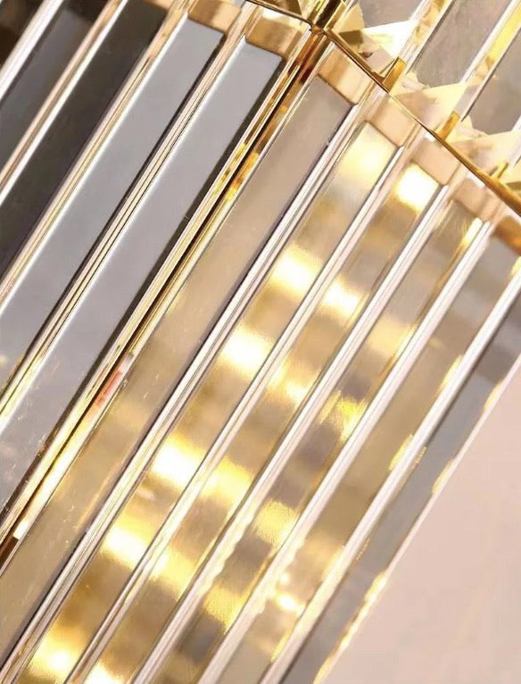 Crafted from crystal and stainless steel, this made-to-order masterpiece invites a dance of light into your sanctuary