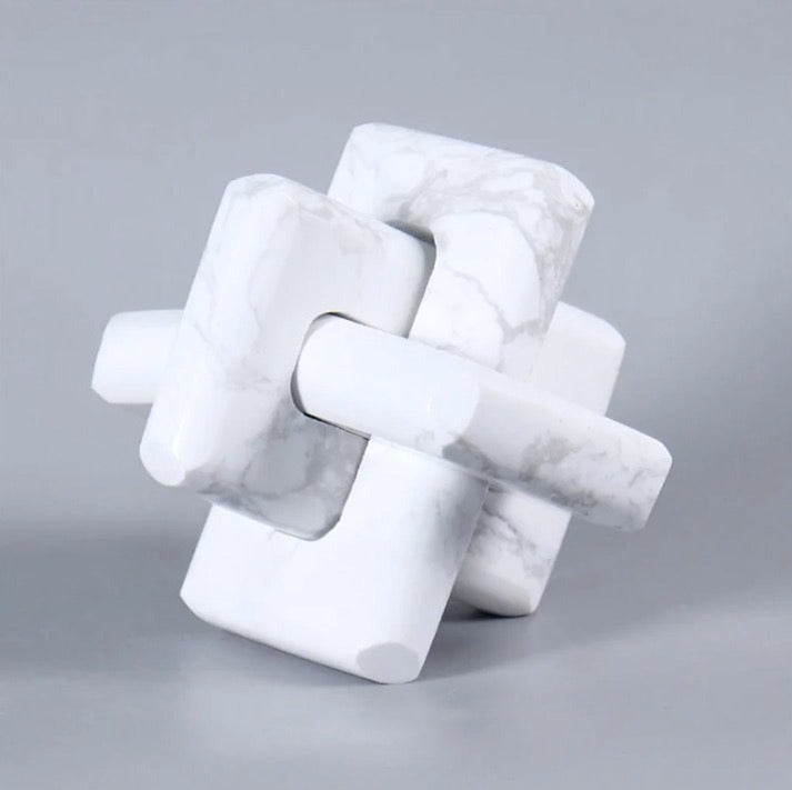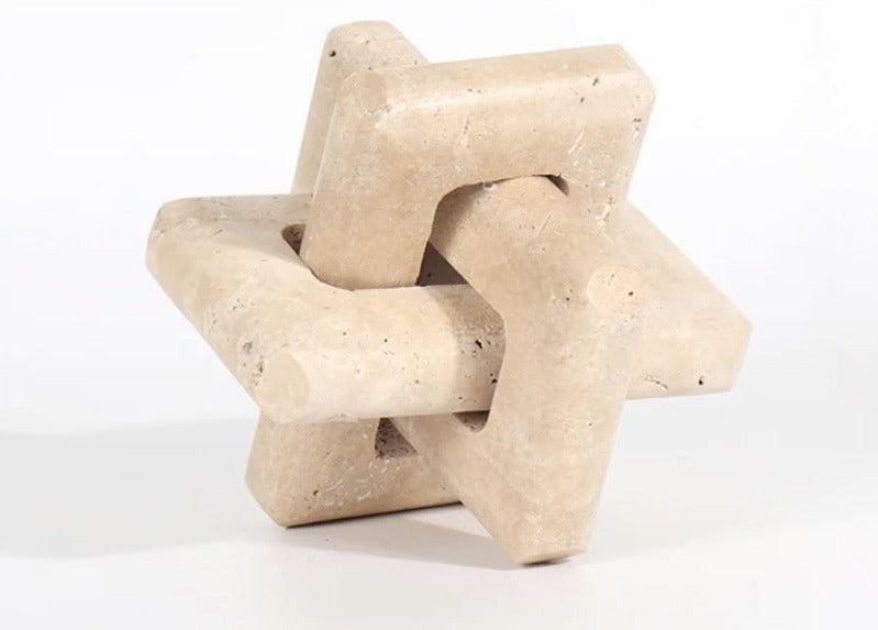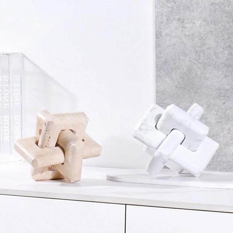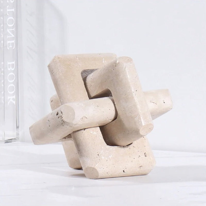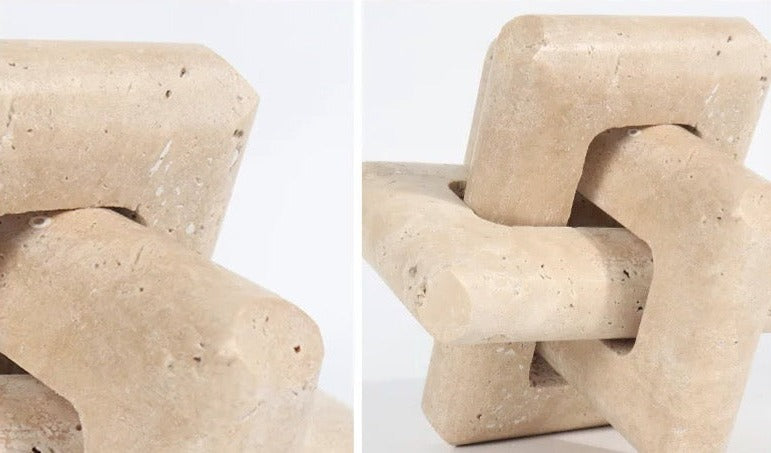 The Kivi Knot is an elegantly sculpted decorative piece that combines contemporary art with classic materials to create a striking visual statement. Available in either pristine marble or warm travertine, each piece features a complex, interlocking design that resembles a three-dimensional knot.